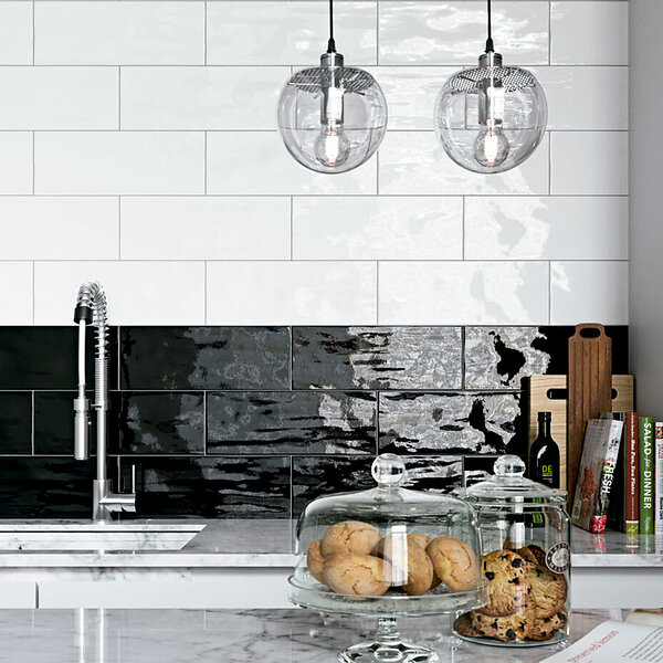 Arredo Kakel Color Negro Svart Metro Biselado Blank 7,5x15 cm 254958