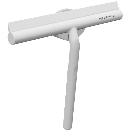 Minism duschskrapa – avdragare för dusch, badrum, kakel, speglar, fönster – inkl. magnethållare utan borrning, självhäftande – badrumstillbehör – modern design i elegant (21 cm, vit)