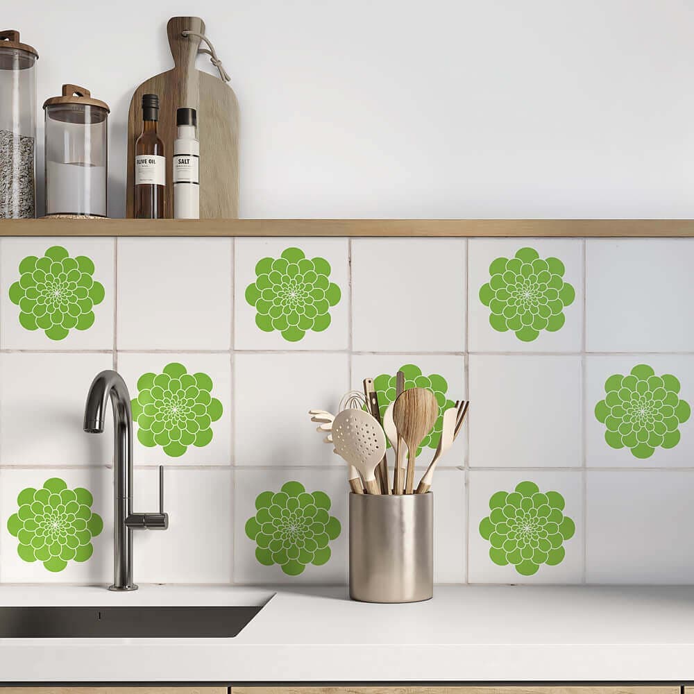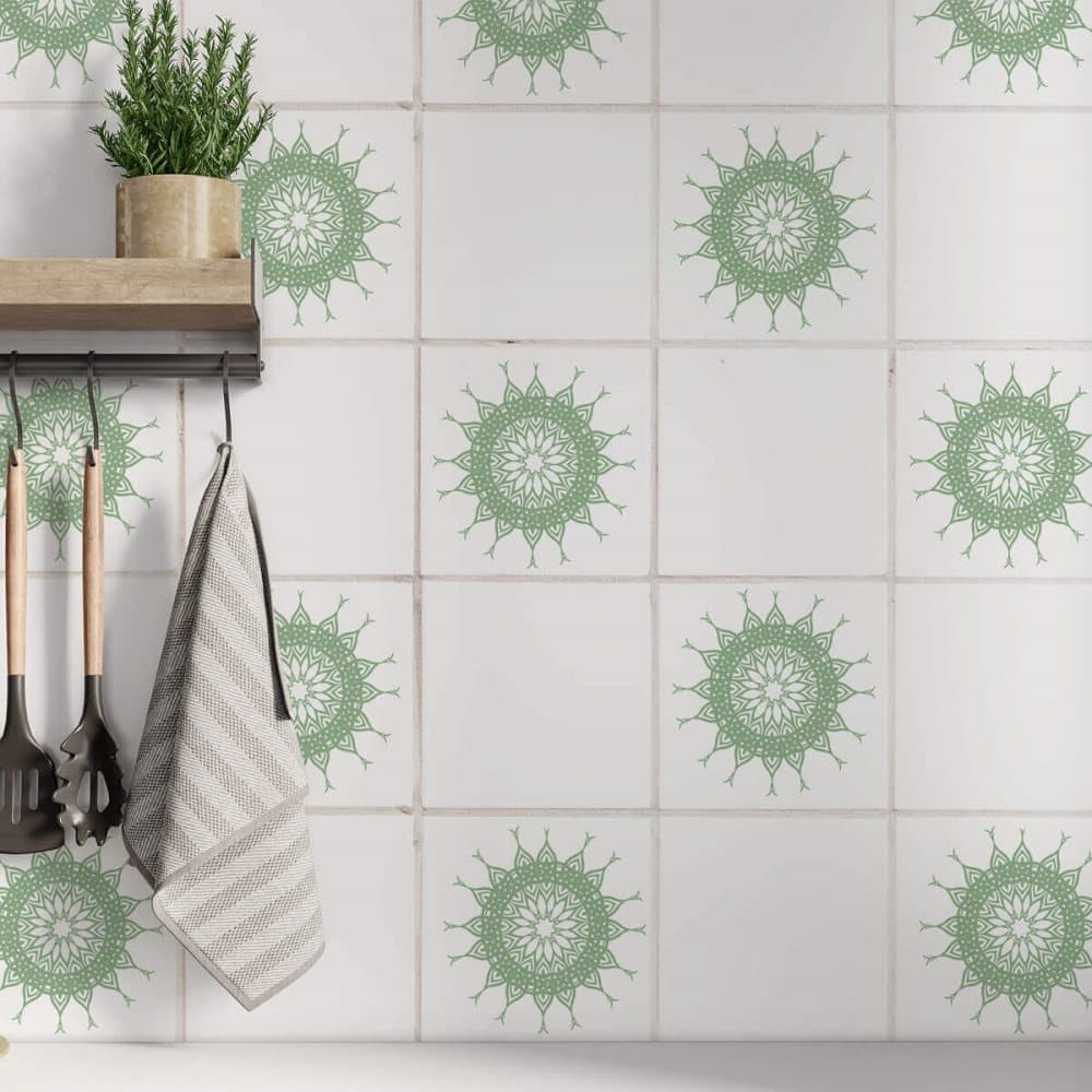 Kakeldekor mönstrad cirkel grön 15x15 cm