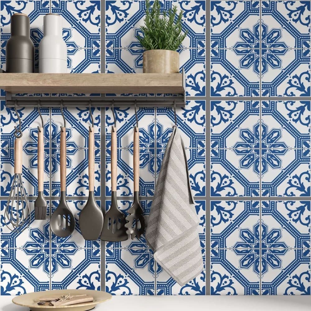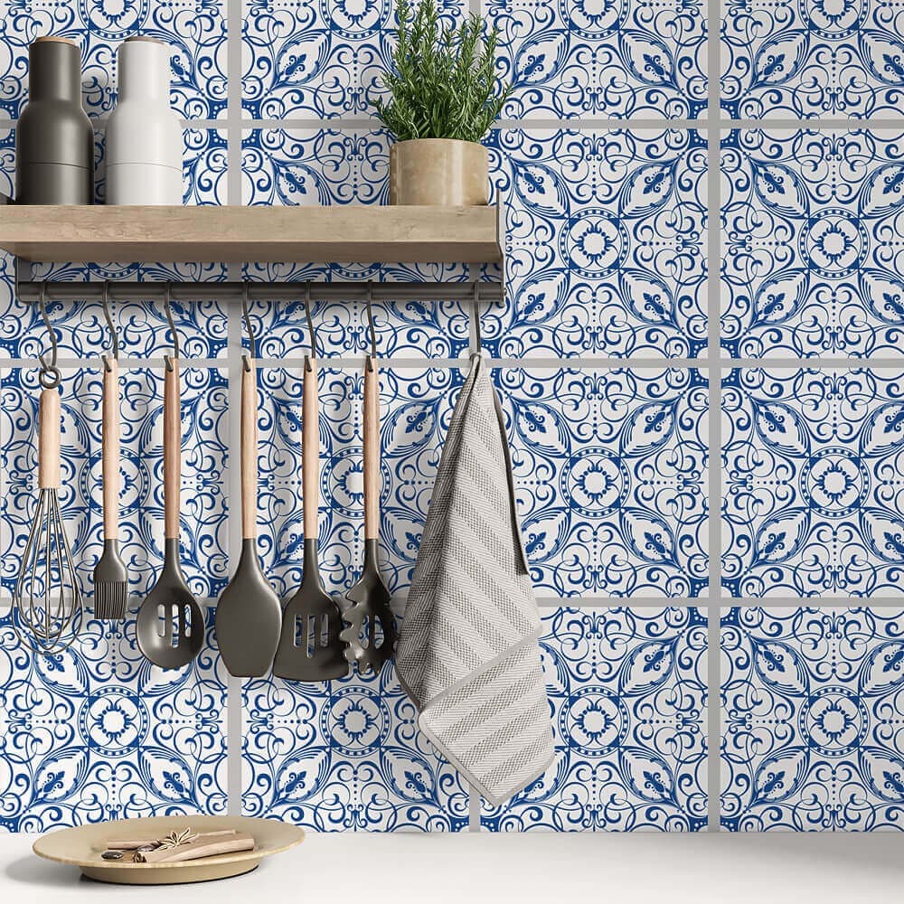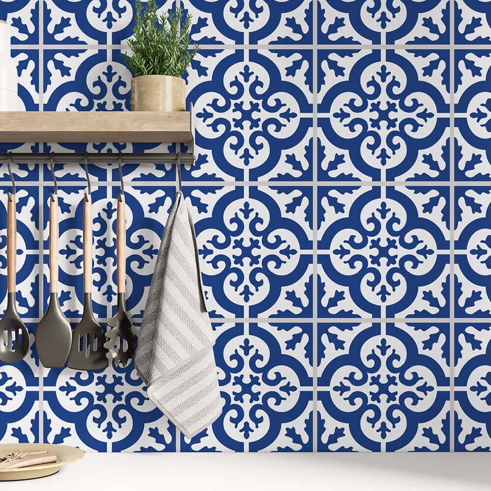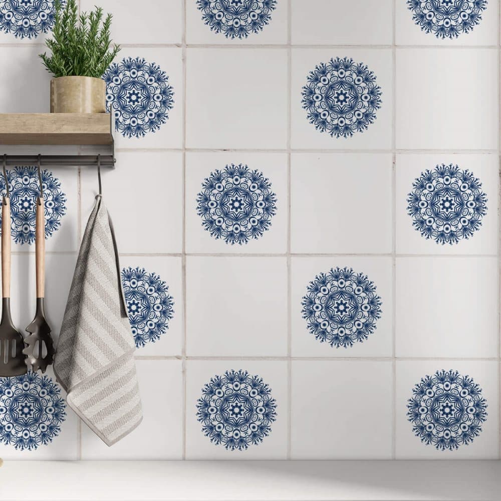 Kakeldekor mönstrad cirkel mörkblå 15x15 cm