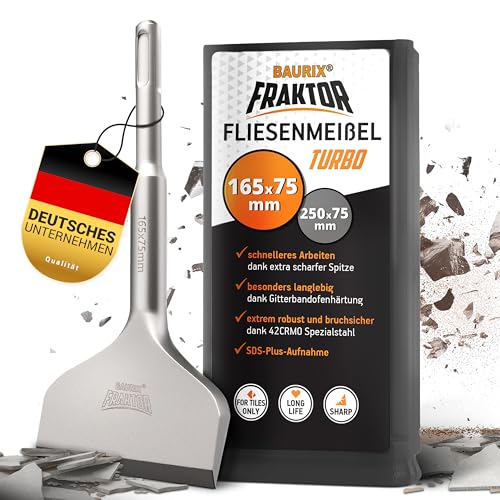 BAURIX® Kakelmejsel SDS Plus [165 x 75 mm] - FRAKTOR®-system - Highspeed Kakelmejsel för enkel borttagning av kakel och kakellim - SDS Plus mejslar i specialstål 42CrMo - Bredmejsel