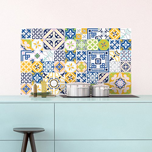 60 självhäftande kakellim klistermärken | klistermärke – väggdekor väggplattor badrum och kök mosaikplattor 10 x 10 cm – flerfärgade – 60 stycken