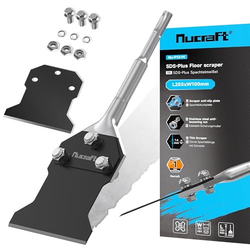 Nucraft Spaktmejsel set SDS-Plus 250 x 100 mm, mejsel inklusive ersättningsblad och skruvar, golvskrapa för att dra bort golvlim, matta, linoleum, kakellim, PVC-kakel, färg