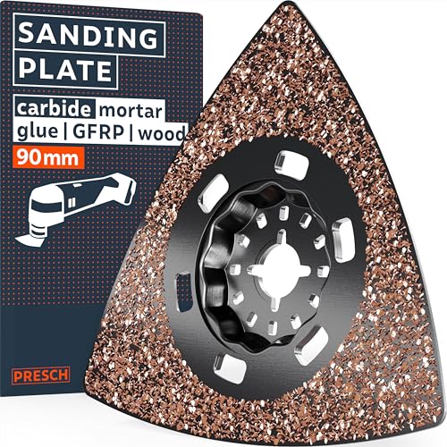 Presch Multiverktygstillbehör Slipplatta 90mm - Perfekt avverkning för murbruk och kakellim - Extremt robust tack vare karbidbeläggning med kornstorlek 20 - Delta-form för exakt slipning