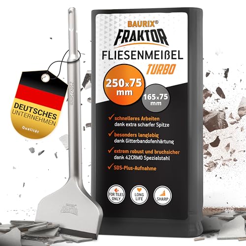 BAURIX® Kakelmejsel SDS Plus [250 x 75 mm] - FRAKTOR®-system - Highspeed Kakelmejsel för enkel borttagning av kakel och kakellim - SDS Plus mejslar i specialstål 42CrMo - Bredmejsel