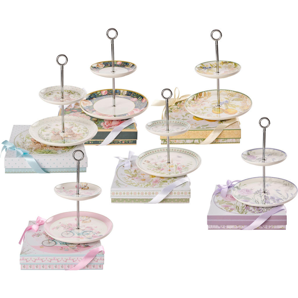 Kakfat 3 Våningar med 2 Mönster Vintage Blommönster