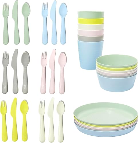 Ikea Kalas Set med BPA-fri plastservis för barn, tallrik, kopp och bestick, pastellfärger