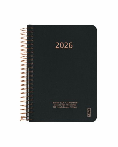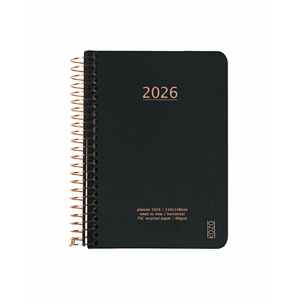 Kalender A6 2026 Vecka Per Uppslag Black KOZO