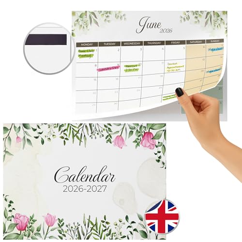 Finoly Magnetisk Kylskåpskalender på Engelska Januari 2026 Juni 2027 (18 Månader) | 2026 Kylskåpskalender | Månadskalender | Magnetkalender Kylskåp 2026 | Magnetisk Kalender med Fäste (Natur)
