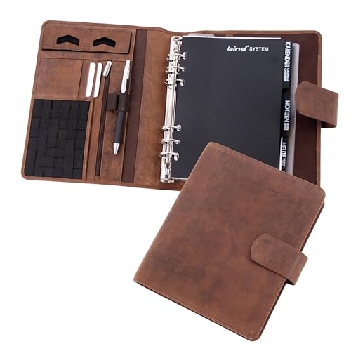 Bind 15505 – Systemplanerare A5, tidsplanerare av läder, chefsplanerare i grått, mötesplanerare med systeminläggshanterare, kalender 1 vecka = 2 sidor, planerare med magnetlås ca 24,5 x 20 cm, brun