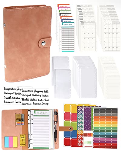 A6 Binder Budget Planner Anteckningsbok – 89 st läder ringpärm set med 6 hål lösa blad notebook-mapp spara pengar mapp med budgetkort/kalender kartta/PVC-väska/påfyllningspapper/etikettklistermärken