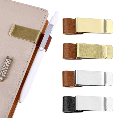 Giantree Pennögla-hållare, 4 st metallpennhållare anteckningsbok läder retro anteckningsbok pennhållare pennögla med klämmor för journal anteckningsbok planerare urklipp kontor ficka kalender