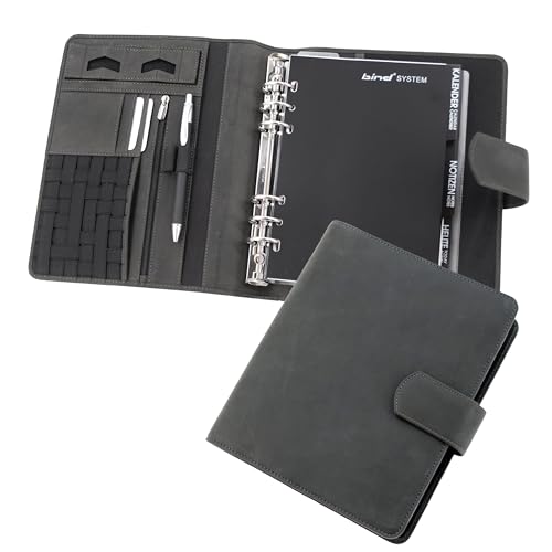 bind – 10100 – systemplanerare A6 inkl. kalender 1 vecka = 2 sidor, läder, svart