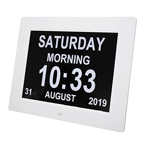 Plyisty Digital Kalenderklocka 10 Tum Lättläst Elektronisk Dagsklocka för äldre, med Medicinering Påminnelser och 8 Språk, Vita (EU)