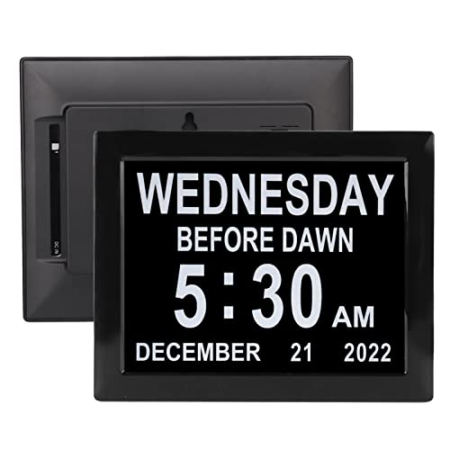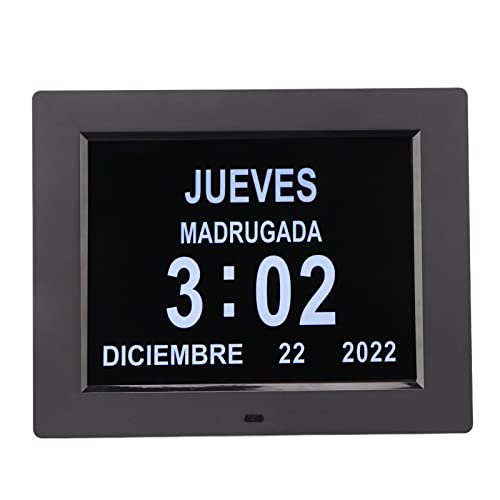 Demensklocka för Seniorer, Elektronisk Kalenderklocka med Flera Språk och Påminnelse Om Att Ta Medicin, Automatisk Dimbar Klocka med 8 Tum Stor Display för Nedsatt Syn