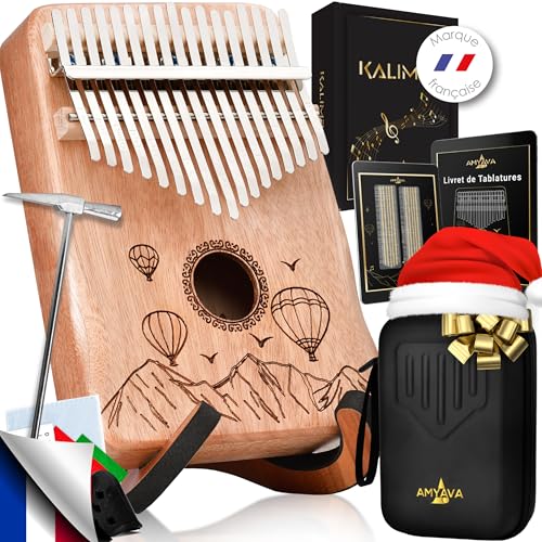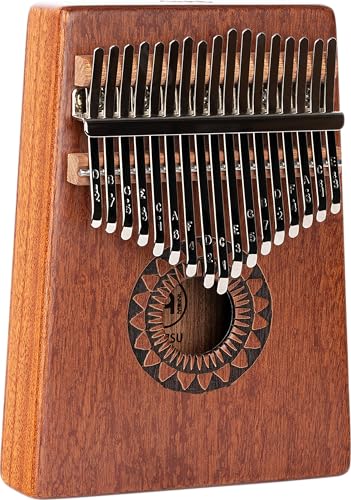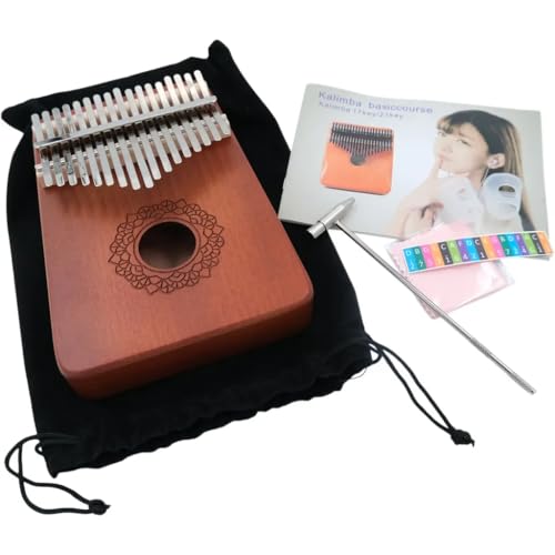 Kalimba 17 emaljerade mahognytränycklar med gravyr, högkvalitativt musikinstrument för vuxna och barn, nybörjare, komplett presentförpackning, inklusive e-bok på svenska