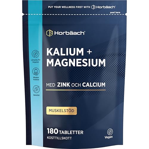 Magnesium Kalium med Zink och Kalcium | 180 Veganska Tabletter | + 6 Månaders Förbrukning | Magnesium Complex med Järn, Vitamin B12 och Vitamin B6 | av Horbaach