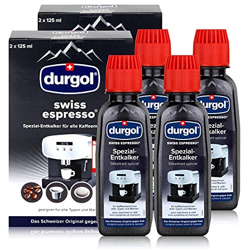 durgol swiss espresso special-avkalkborttagare – kalkborttagare för kaffemaskiner av alla typer och typer – enkel rengöring utan verkningstid och rester – tysk version – 4 x 125 ml