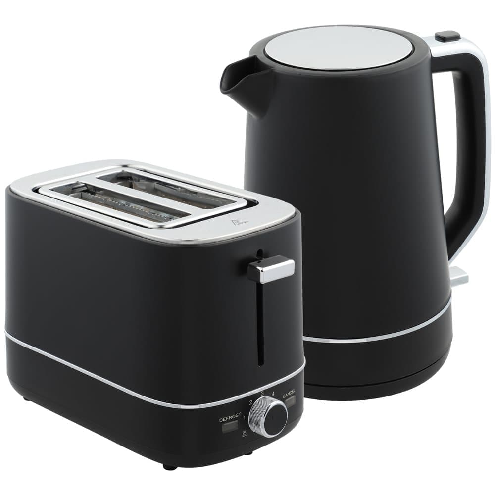 Vattenkokare & brödrost set, 2200 W, 1,7 L, 2 skivor, 6 lägen, uppvärm/defrost, kalkfilter, svart