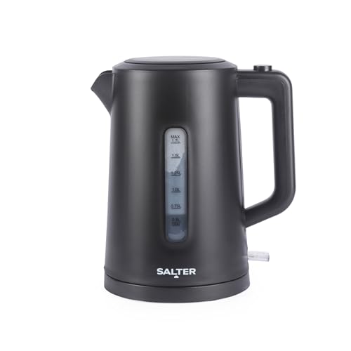 Salter Dusk Elektrisk vattenkokare, 360 graders vridbar bas, 1,7 liter kapacitet, kalkfilter, torrkoksskydd, automatisk avstängning, vattennivåindikator, Strix-styrenhet, matt svart, 2 200 W