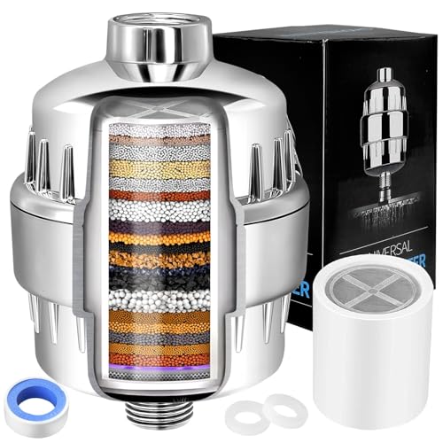 Yolispa 36 nivåer duschfilter med fläktblad med 2 filterpatroner kalkfilter dusch för hårt vatten för att ta bort klor lukter tungmetaller