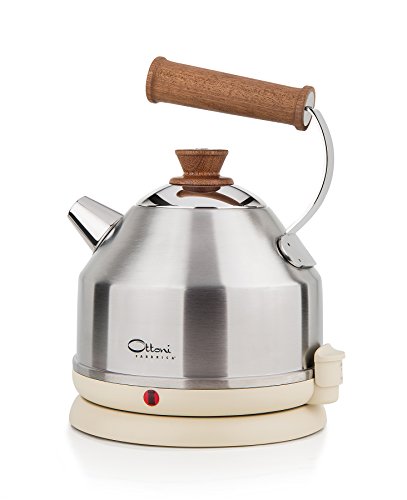 Ottoni Fabbrica Elektrisk vattenkokare rostfritt stål mahogny trä tillverkad i Italien 1,7 l 2 400 W, automatisk avstängning, BPA-fri, avtagbart kalkfilter, torrkörskydd, 360° bas, lignum satinato