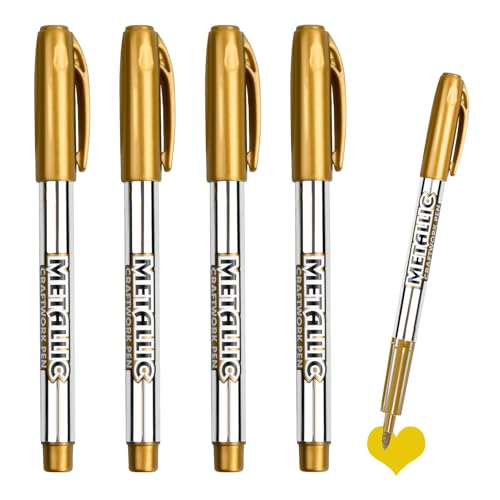4 st metallmarkörpennor, 1,5 mm fin spets, bärbar pennhållare, högkvalitativt bläck, snabbtorkande, för papper, glas och trä, scrapbooking, gör-det-själv-album, kalligrafi (guld)