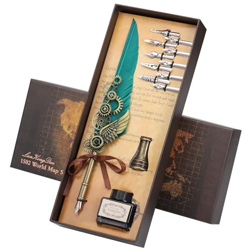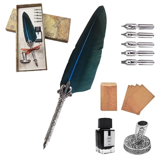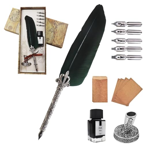 Yosoo Health Gear Fjäderdoppenna, fjäderpenna set, fjäderpenna skrift, gåsfjäder kalligrafi, bläck med 5 extra reservspetsar för verkställande och antik kontorsdekoration