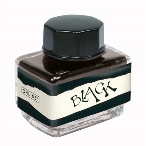 ONLINE Bläck, svart, bläckflaska, 15 ml, färgglatt reservoarbläck för kalligrafi, textning, skrivbläck, bläckhorn för omvandlare, vattenbaserat påfyllningsbläck