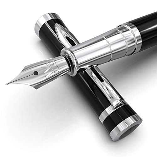 Wordsworth & Black Reservoarpenna Uppsättning, Fin spets, Inkluderar 6 bläckpatroner och bläckpåfyllningsomvandlare, Gåva fall, Journalistik, kalligrafi, [svart guld], Perfekt för män och kvinnor
