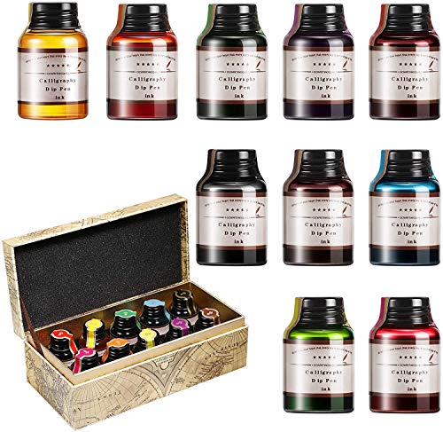 OPENDGO Kalligrafipennor set - trä dopppenna handgjord kalligrafi set med 11 spetsar och svart bläck