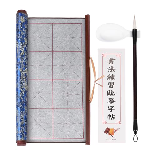 PATIKIL 1 set vatten skrivduk, kalligrafi återanvändbar vatten ritning skrivduk magiskt papper tomma rutnät borstar inget bläck kinesisk kalligrafi set för nybörjare som tränar, grå