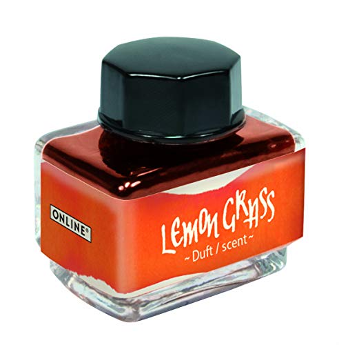 ONLINE Doftbläck citrongräs, bläckglas orange 15 ml, färgglatt reservoarbläck för kalligrafi, textbläck, bläckhorn för omvandlare, vattenbaserat bläck