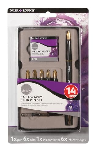 Daler-Rowney Simply kalligrafi dipppenna set, 1 penna, 5 spetsar, bokstäver tillbehör, perfekt för nybörjare och hobbyister