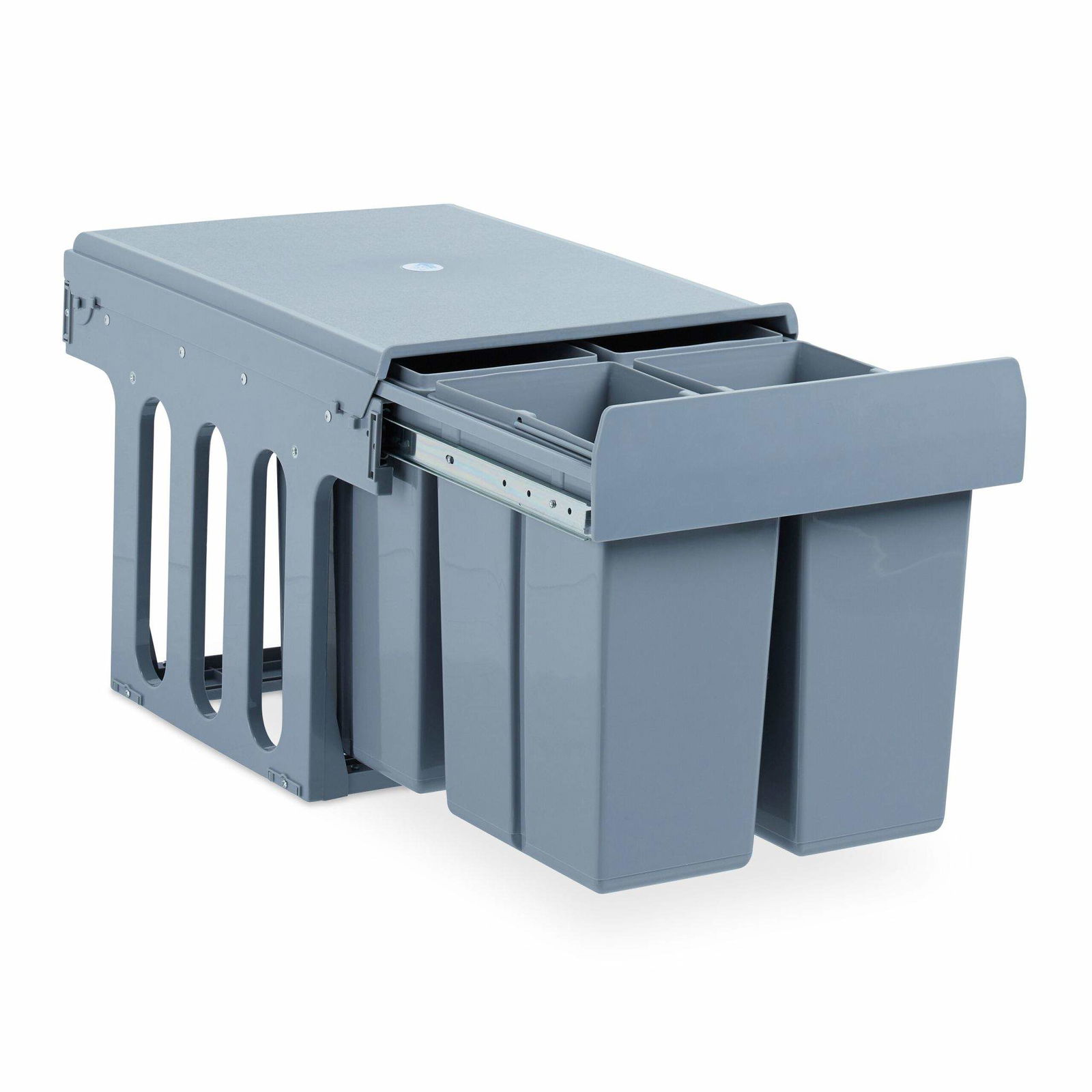 LM 79/3 utdragbar källsortering med 1 x 16 L, 2 x 8 L sopkärl i antracit färg, 33,2 x 48 x 35,5 cm, enkel bottenmontering i köksskåp