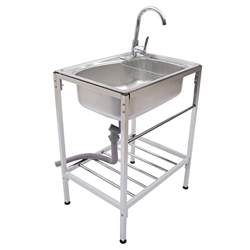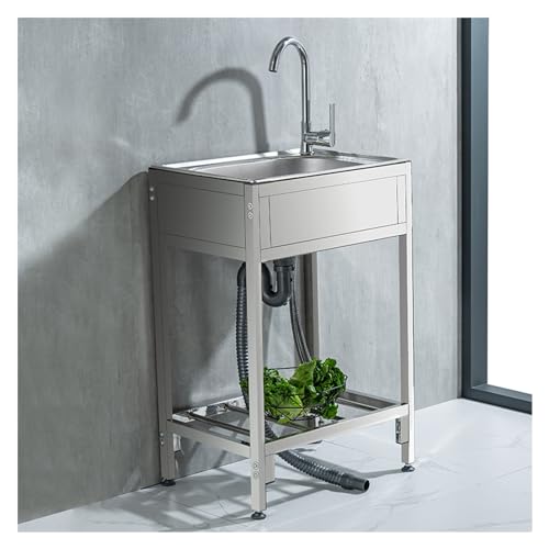 Köksho i Rostfritt Stål med Varm och Kallvattenkran, Fristående Trädgårdsho, Enkelskålshink för Inomhus/Utomhus (Size : 58x43cm(23x17inch))