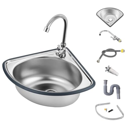 Diskbänk rostfritt stål kantig diskbänk triangulär hörndiskbänk, väggmonterad hörndiskbänk kök, liten triangel handfat, inbyggd diskbänk med kallvattenkran (djup 13 cm)