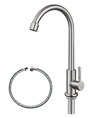 ONECE Kökskran Endast för Kallt Vatten, 360° Vridbar Köksblandare, Borstad Diskbänkskranar, Kallvattenkran Kök med Anslutningsslang, Avtagbar Luftare, Vattenkran 304 Rostfritt Stål