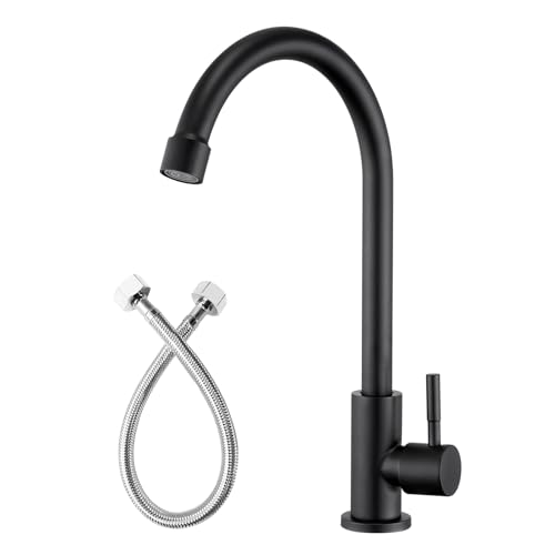 CECIPA kallvattenkran svart, kran endast för kallt vatten med rostfria muttrar 304, vattenkran kallt vatten svart med 60 cm anslutningsslang x 1 – perfekt för kök, kran kök svart