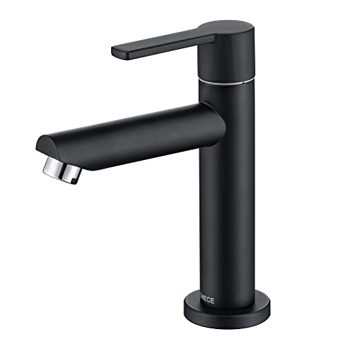 ONECE Kallvattenkran i Mässing, Vattenkran Kallvatten för Gästtoalett, Handfatskran Endast Kallt Vatten, Badrumskran Med Anslutningsslang, Avtagbar Luftare, Keramisk Ventilkärna, Svart