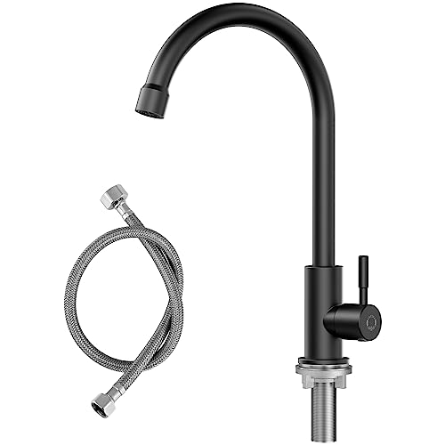 CREA kallvattenkran kök, vattenkran kallt vatten, kran kallt vatten för kök eller trädgård, 360 graders vridbar kallvatten kökskran, med anslutningsslang, matt svart