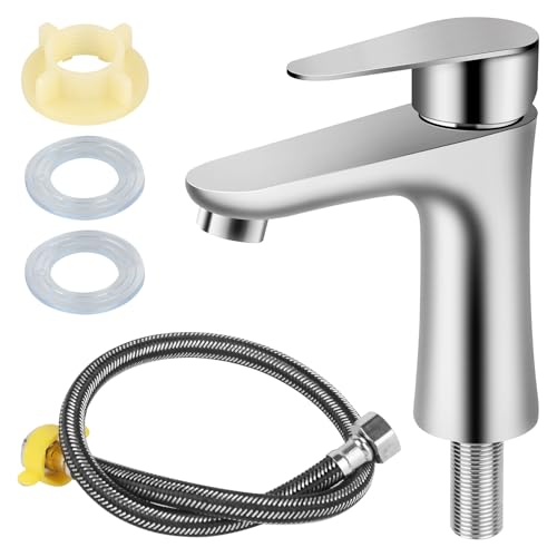 Kallvattenkran rostfritt stål kallvattenarmatur med 80 cm anslutningsslang, vattenkran kallt vatten badrum tvättställsarmatur gäster WC ettgreppsarmatur för badrum gäster, toalett