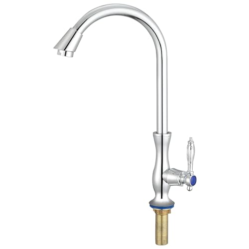FIGFYOU Handfatskran enkel kall kran handfat blandare kranar enkelhandtag vattenmunstycke kallvattenkran badrum garderob handfat kran krom kors handtag badrumskran med filter för badrum kök