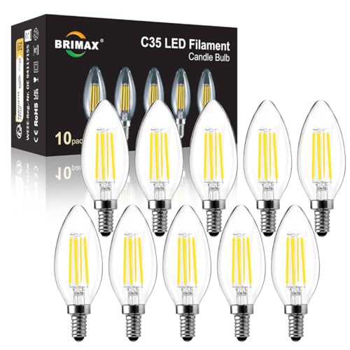 BRIMAX 10 st E14 Candles LED-lampor Dimbar kallvit 5000K 6W=60W Glödlampa E14 C35 lampa 600lm AC230V Klarglas Led ersättningslampor E14 för ljuskronor Bordslampor Vägglampor