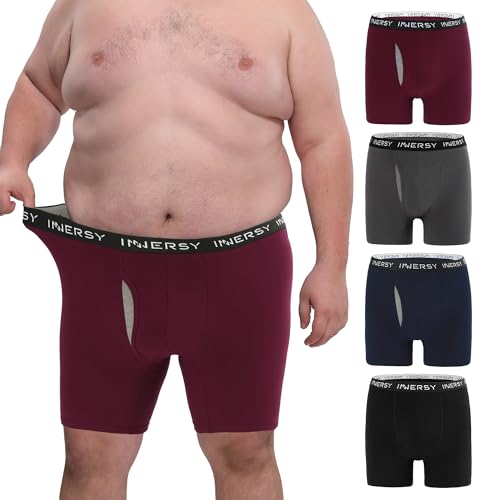 INNERSY Boxershorts för män, stora storlekar, kalsonger, bomull, med gylf, underkläder, XL-5XL, 4-pack, Svart/marinblå/grå/vinröd, XXL plus size