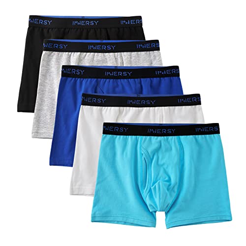 INNERSY Kalsonger för pojkar, bomull, boxershorts med gylf, mjuka retroshorts, underkläder, 5-pack, irisfärg, 146-160