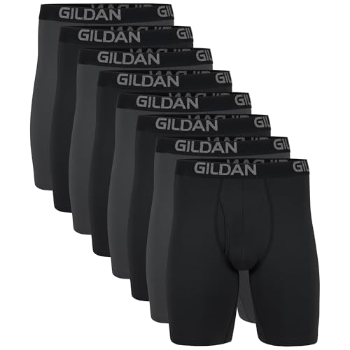 Gildan Herr underkläder bomull stretch boxer kalsonger, multipack retroshorts, svart soot/kolhimmel (8-pack, långa ben), stor, Svart Soot/Kålande himmel (8-pack, långa ben), L