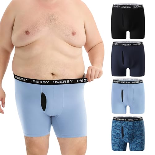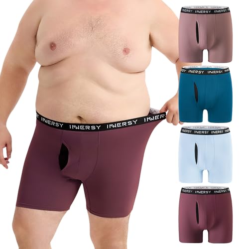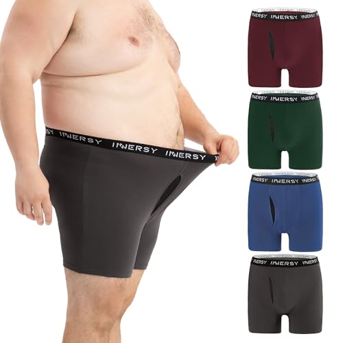 INNERSY Boxershorts för män, stora storlekar, kalsonger, bomull, med gylf, underkläder, XL-5XL, 4-pack, Blå/grå/grön/vinröd, 4XL plus size