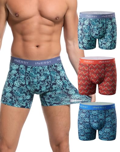 INNERSY Mäns kalsonger snabbtorkande kalsonger män med gylf andas retroshorts 3-pack, 3 havsdjur mönster, L