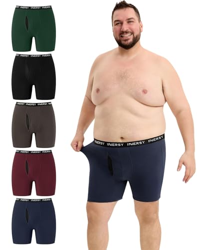 INNERSY Stora storlekar, boxershorts, herr, bomull, kalsonger, män, med gylf, underkläder, XXL-6XL, 5-pack, 5 klassiska, flerfärgade, XXL plus size